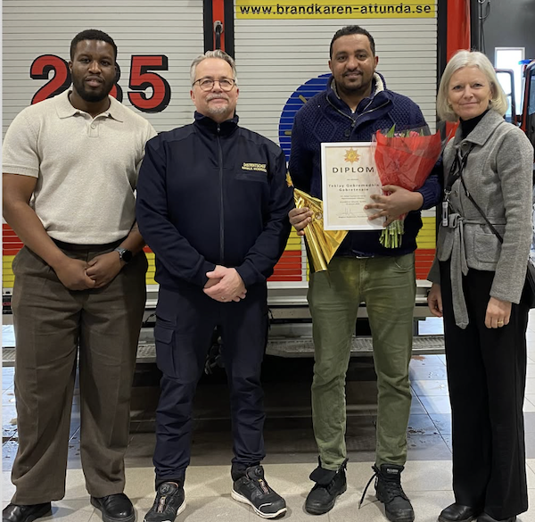 Märstafolket Teklay uppmärksammats för ett rådigt ingripande i samband med en lägenhetsbrand i Märsta i januari.