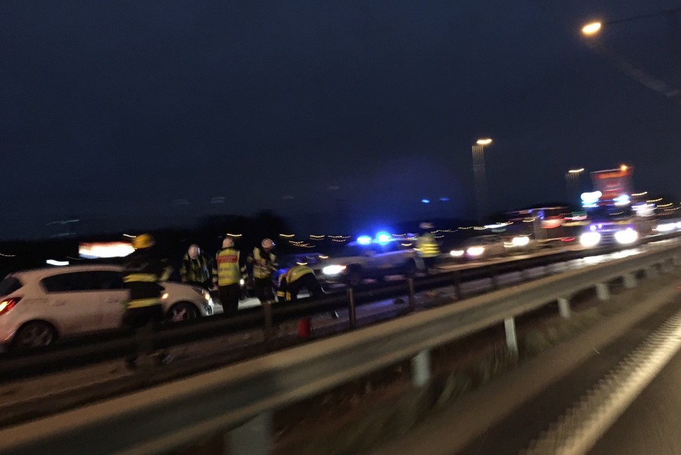 Blåljus Vid 7 i morse small det mellan två personbilar på E4:an i höjd med Rosersberg vilket orsakar kraftiga köer in mot Stockholm: - Det är inga personskador, säger Eva Nilsson vid Polisens regionledningscentral till märsta.nu