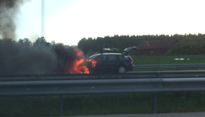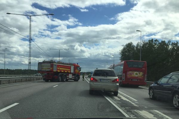 Blåljus På grund av en bilbrand i Stora Wäsby uppstod långa köer söderut på E4:an vid 18.30-tiden.