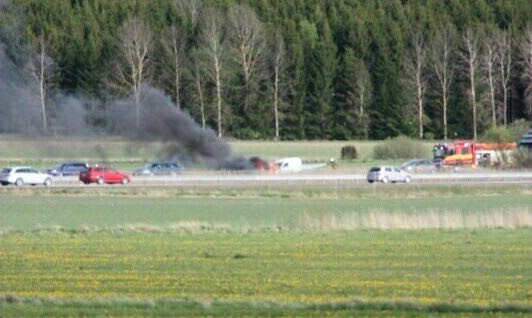Blåljus En lastbil börjad brinna på E4 norrgående under eftermiddagen och orsakade långa köer vid Arlanda.