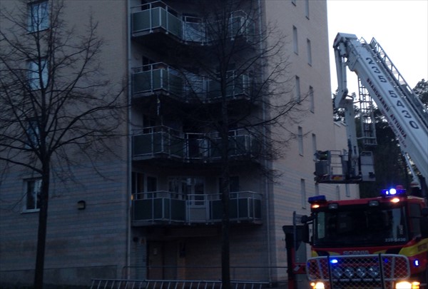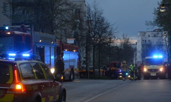 Blåljus Det brann i en lägenhet på tredje våningen på Södergatan vid 20.40-tiden och eventuellt är en person lindrigt skadad.