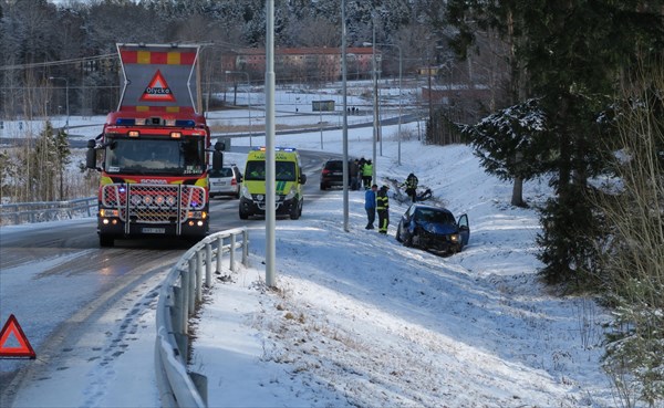 Blåljus En bil åkte av Midgårdsvägen i riktning mot Valsta strax efter klockan 11 på lördagen.