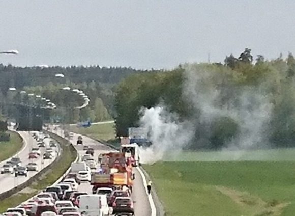 Blåljus En bil som började brinna vid 16-tiden orsakade kraftiga köer på E4S vid Stora Wäsby.