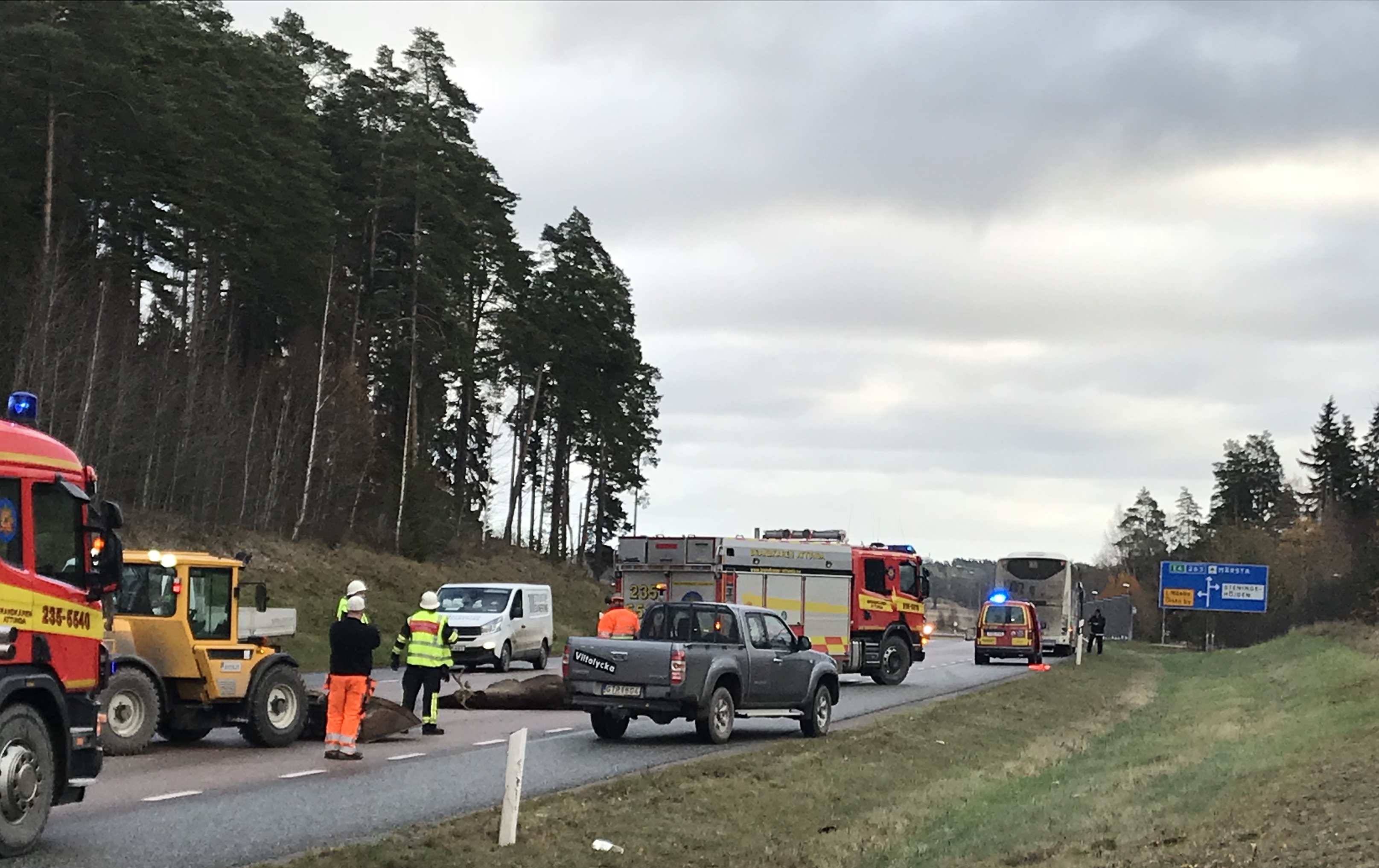 Blåljus En buss krockade med älg vid 11-tiden på fredagen på väg 263 i höjd med Rävsta