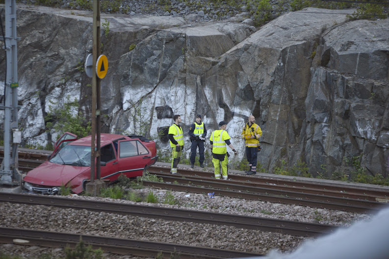 En bil på spåren i höjd med Brista stoppar tågtrafiken. Foto: Daniel IskanderFoto: Jamshid JamshidiFoto: Jamshid JamshidiFoto: Jamshid Jamshidi