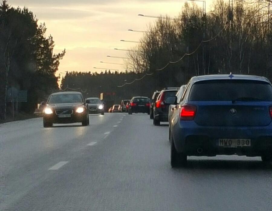 Vid 8-tiden är det också kraftiga köer på E4:an söderut. Köerna startar redan vid Arlandastad (Se bild i sliden)