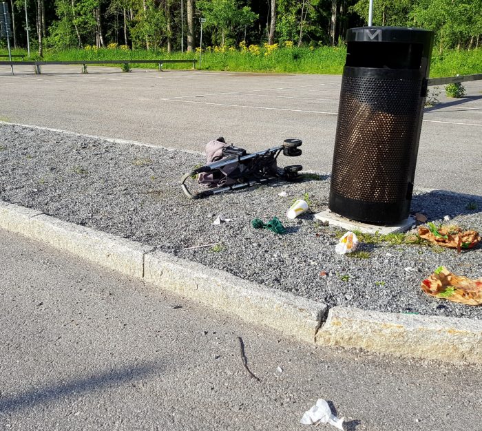 Polis vid Råbergsvallen för att hantera ett kringresande sällskap som slagit sig ner. Foto: MMS-BildDagen efter ser det ut så här i Rosersberg.Foto: Insändarbild