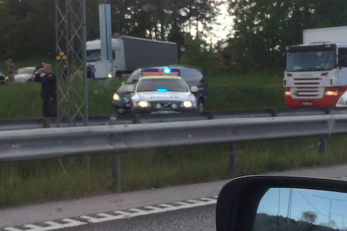 Det brann kraftigt från en bil på E4:an södergående vid 18.30-tiden vilket har orsakat långa köer in mot Stockholm. Köerna påverkade framkomligheten ända från Märsta och Arlanda. Ett vittne uppger för märsta.nu att det var totalstopp ända till Märsta. Röken stegrade sig upp mot himlen och syntes över hela Rosersberg. Vid 19.15 var det släckt och framkomligheten var åter normal förbi platsen.