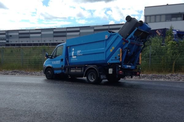 En sopbil från IL Recycling i Rosersberg var inblandad i en krock med två andra personbilar på Metallvägen i Rosersberg: - Det är inga höga hastigheter där, så hur olyckan gick till vet jag inte, säger Albin Näverberg vid Polisens regionledningscentral