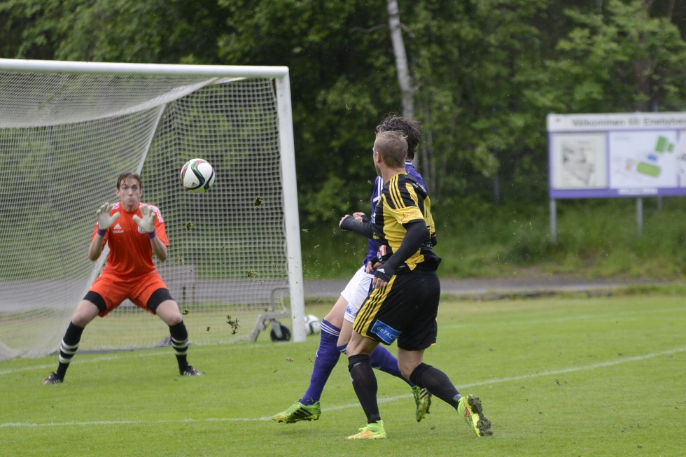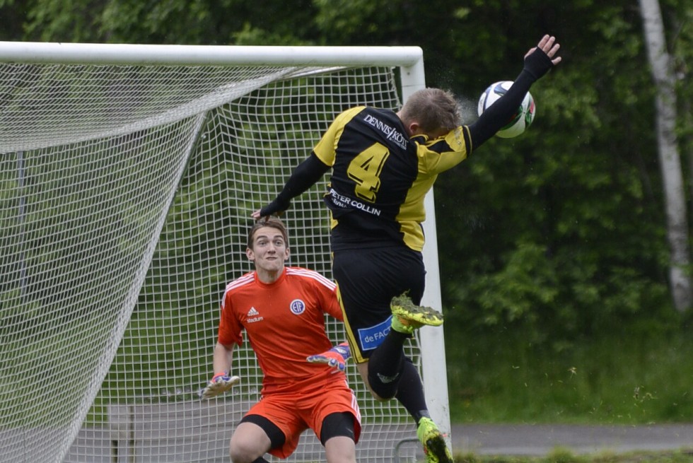 Matchen är igång. 5 minuter är spelade. MIK har haft en halvchans som EIS -målvakt räddade.