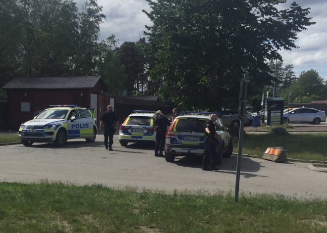Blåljus Polisen larmades efter uppgifter om en kvinna som ska ha gått med en yxa längs vägen mot Steningebadet. Trots sökinsats med patrull och helikopter anträffades ingen misstänkt.
