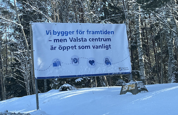 Det kan tyckas hyggligt att kommunen – med en stor skylt intill Valstavägen – upplyser oss om att affärerna i Valsta Centrum är öppna.