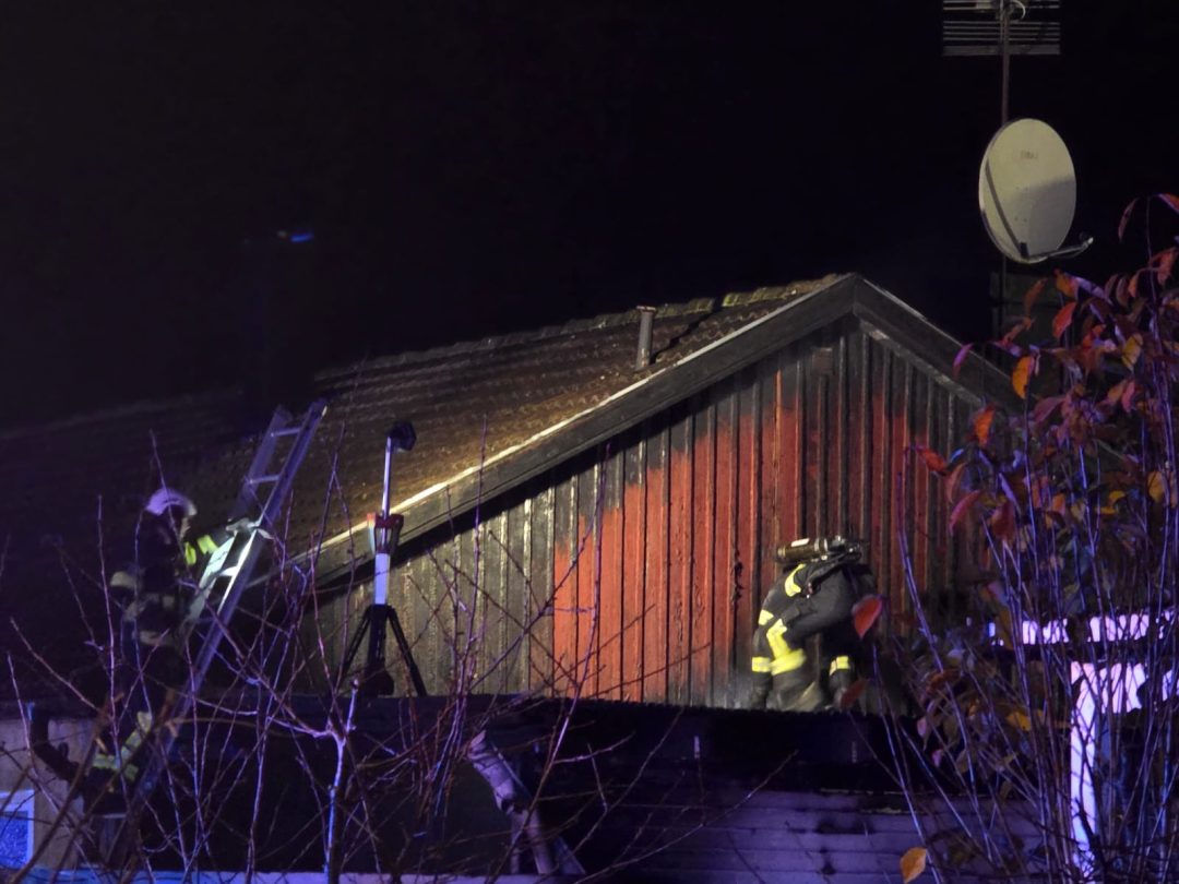 De boende har lämnat huset. Polis finns på plats och pratar med grannar och de boende för att utreda hur branden kan ha uppstått.